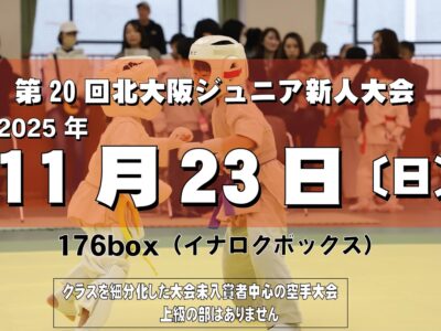 第20回北大阪ジュニア新人空手道大会 2025年11月23日(日)176box(イナロクボックス) 優勝 手銭みのる 優勝 手銭たける 優勝 塩﨑さゆ 優勝 堀井そうたろう 優勝 安達かずき 優勝 塚本かいと 優勝 藤井かんと 優勝 西...